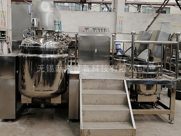 搅拌形式——主锅为框式搅拌加均质头,油水锅有锚式搅拌、分散盘以及浆叶式搅拌等。